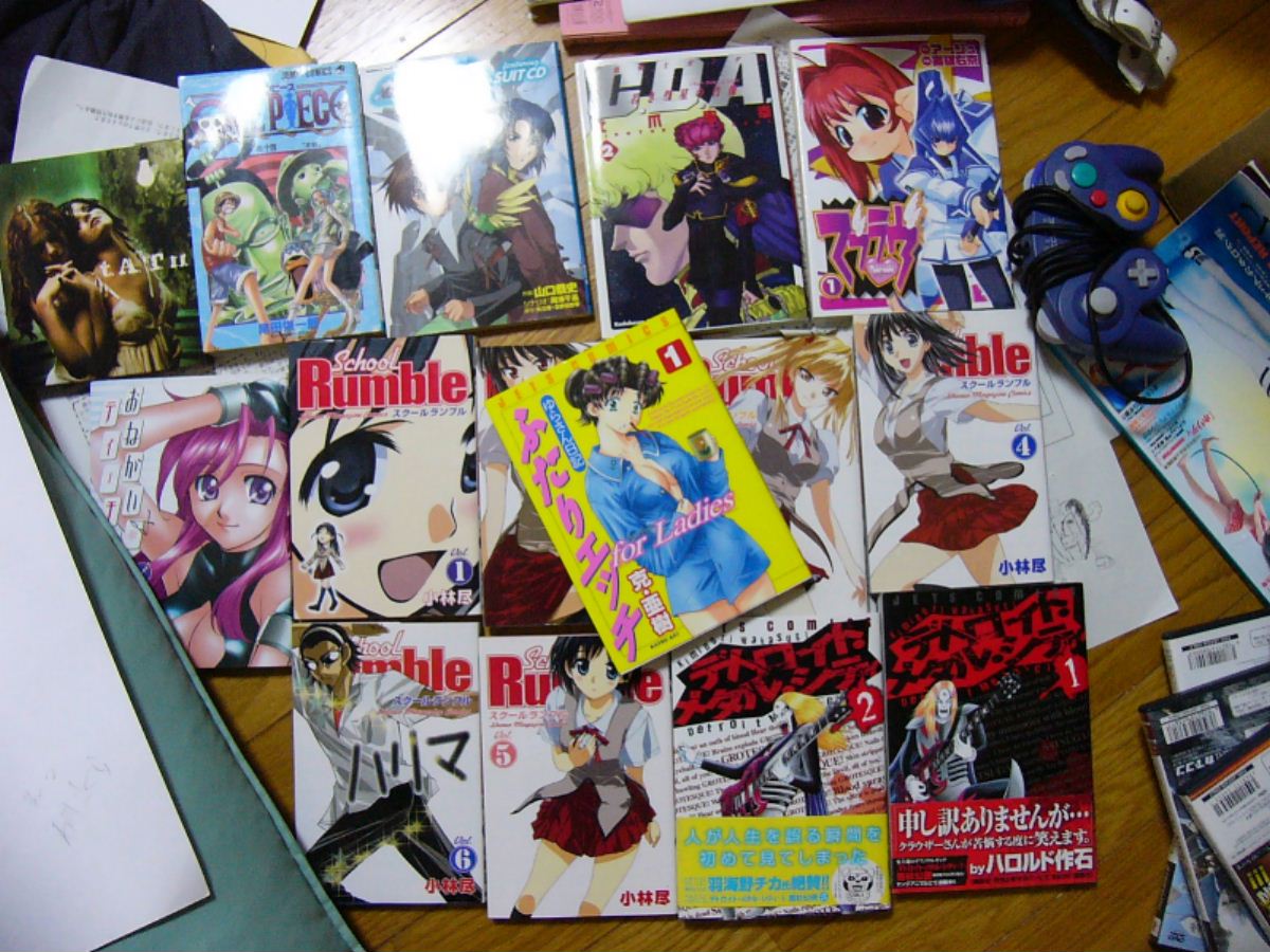 タトゥーのアルバム、デラックスエディション。ワンピ14巻、種CDドラマの漫画版、CDA2巻、マヴラヴ1巻、おねてぃ2巻、スクラン1~6巻、デトロイドメタルシティ1・2巻、ふたりエッチガールズサイド(?)1巻。
