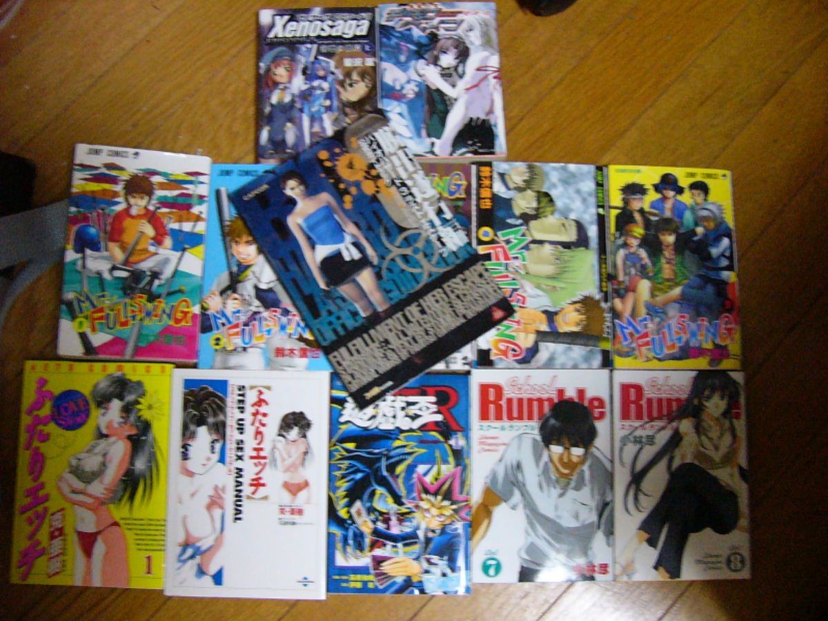 えー、ゼノEP2小説上巻、小説デモンベイン2巻、ミスフル1~5巻、バイオ3攻略本、ふたりエッチ1巻、ふたりエッチハウトゥ本、スクラン7・8巻、遊戯王R1巻です♪