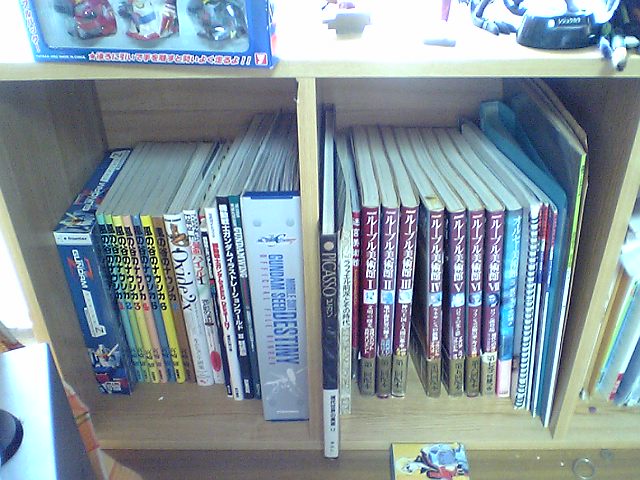 ただの場所埋めにしかなっていませんが、作業机の左隣にある本棚公開。