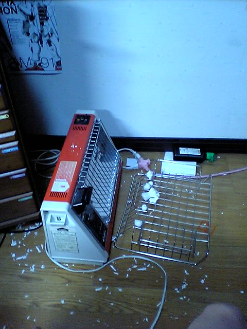 作業机の右隣にある電気ストーブです。ファンドを早く乾かす為に使っておりますが、やはりこの季節は暑いですね、ということで私の部屋では夏場でも電気ストーブがつき、扇風機もついているわけです。電気代もったいねぇ・・・