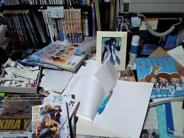 今現在の机の状態。えー・・・相変わらず汚いです。