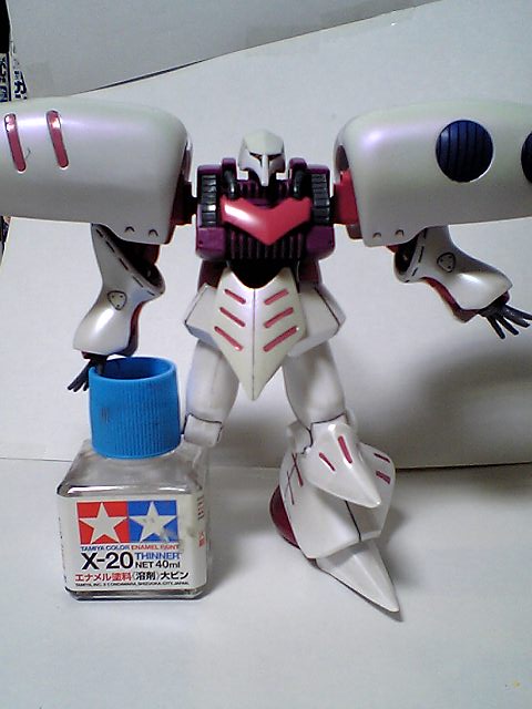 肩と頭あたりのみ、エアブラシで紫パールで、その他はスプレー缶のガンダムホワイトの上に同じくスプレーでガンダムパールホワイトを吹いてあります。